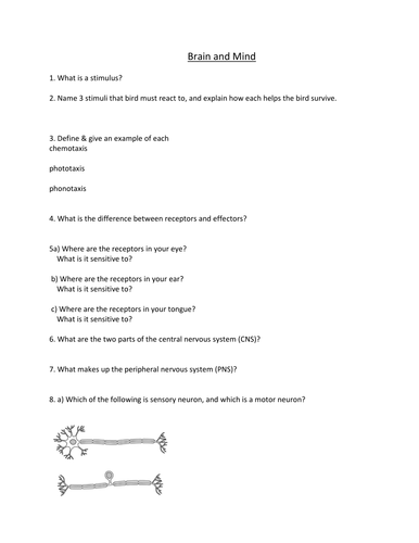 The Nervous System: NYS Regents Questions by THE LAB ASSISTANTS